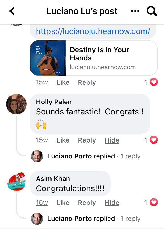 “Luciano’s Music makes me feel Alive Connected and Hopeful” (Peter from Toronto)